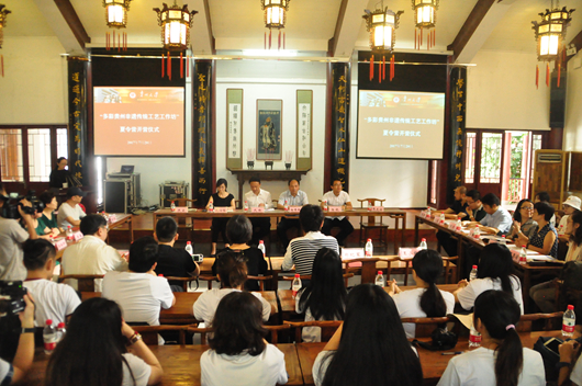 贵大新闻网讯(实习记者 肖媛  摄影 唐国飞)720日上午,由贵州大学和台湾中国文化大学主办的多彩贵州非遗传统工艺工作坊夏令营开营仪式在贵州大学北校区文化书院举行。来自台湾中国文化大学、台湾艺术大学、树德科技大学等十余所宝岛高校艺术设计类的29位师生,以及万象城网页版22位师生共同参加了此次活动。